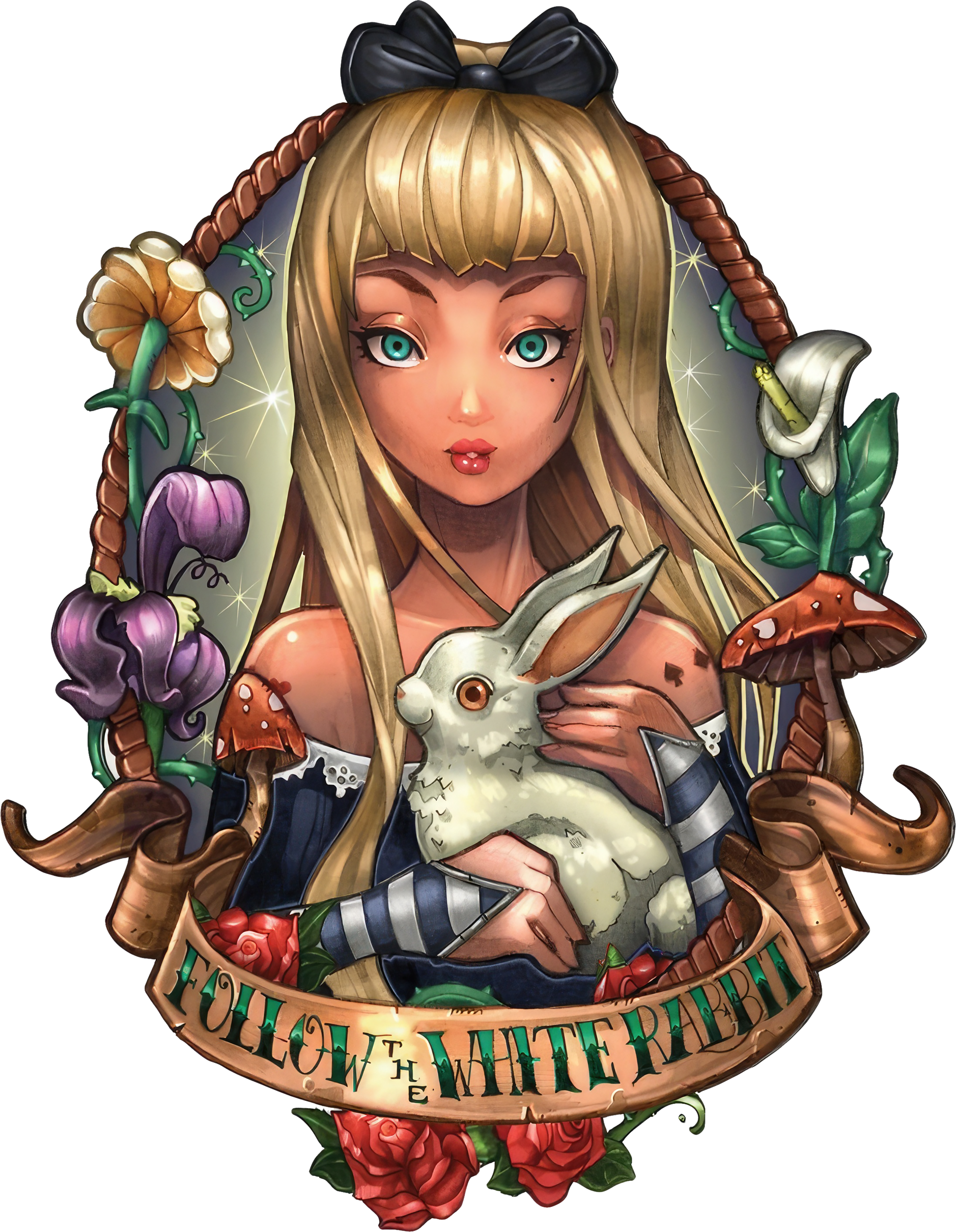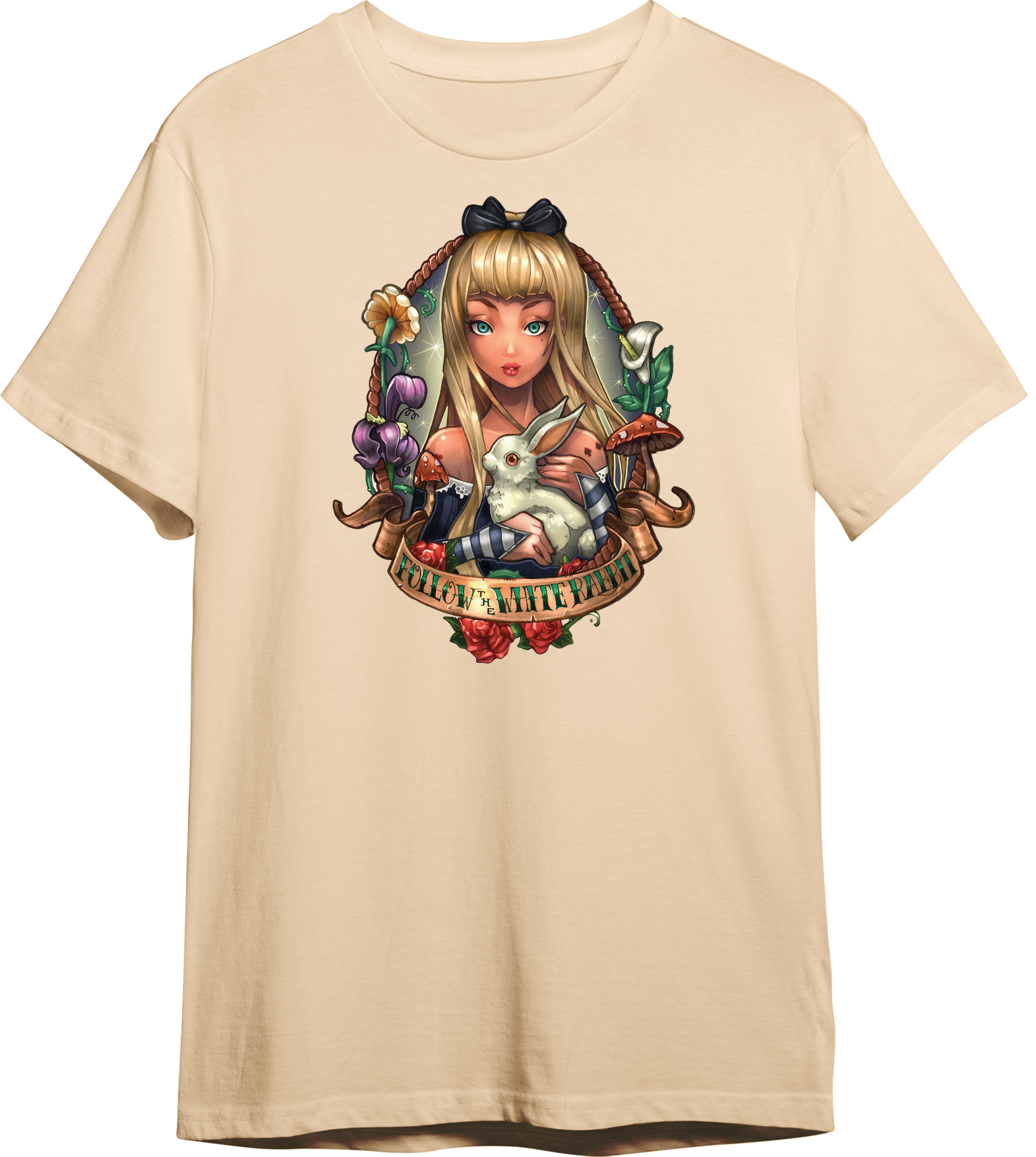 Alice-Follow the White Rabbit. Classic crew neck t-shirt with your choice of tattoo princess. Look for our other designs! Made upon order