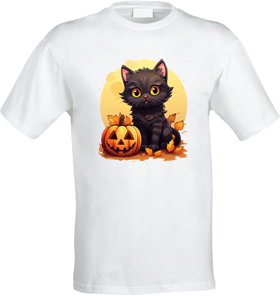 Get the purr-fect Halloween look with our Black Kitty with Pumpkin shirt. This shirt features a playful black cat with a pumpkin, adding a touch of spooky fun to your wardrobe. (Feline-lovers will love this one!) Get yours now before it's gone! 🎃🐱