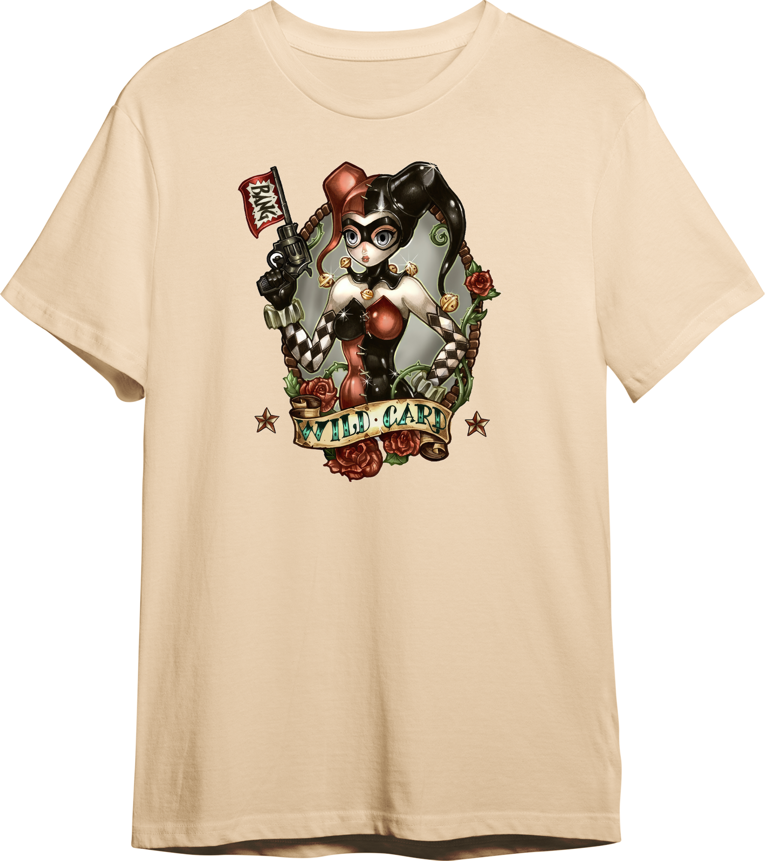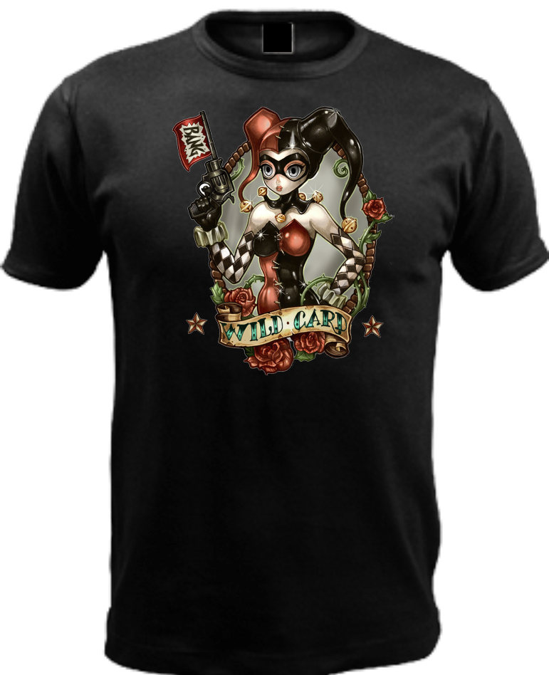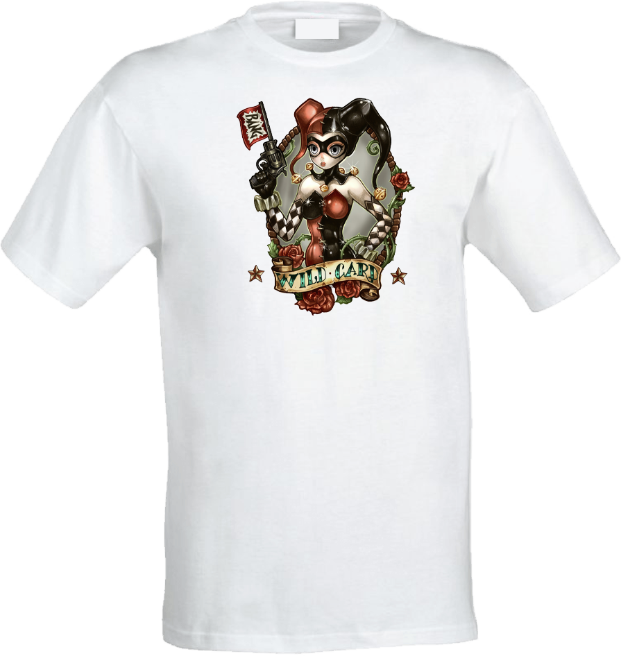 Harley Quinn Wild Card Classic crew neck t-shirt with your choice of character. Look for our other designs! Made upon order