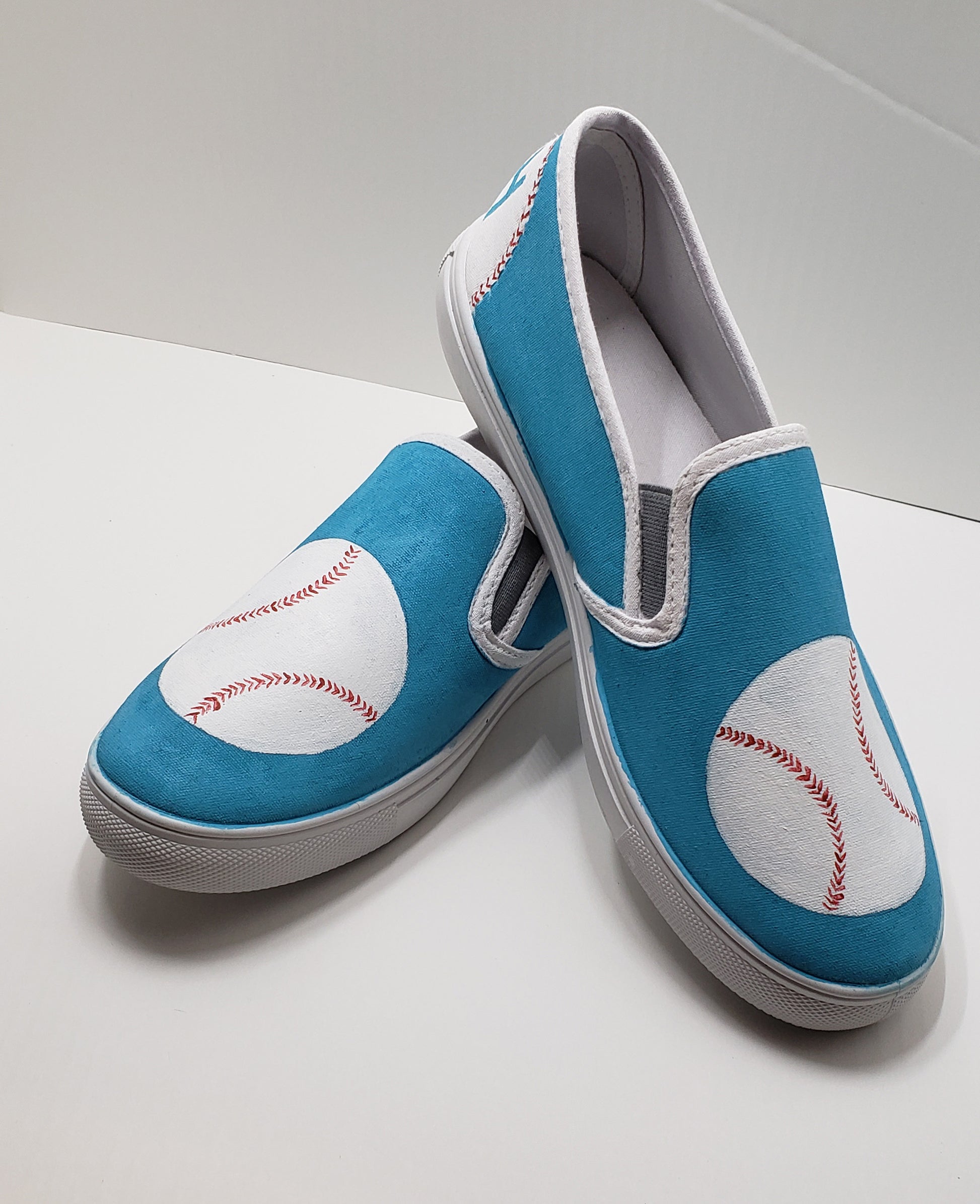Support your favorite player with these hand-painted fully customizable shoes. Pick your sport and team color(s), add player name and number, then customize with your choice of name to show your support and cheer on!